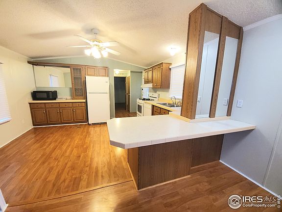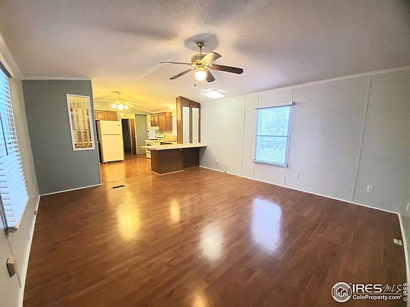 This well kept gem is worth dropping what you are doing for! Great central Loveland location and friendly 55 and over community. Attached garage is fully insulated and has a newer door. Bonus workshop/ shed area connected to the garage. Home has a great open floor plan design with kitchen counter overhang for stools and eat-in kitchen style dining area with coffee bar area. All appliances included! Large master bedroom with great 5 piece master bath, complete with double vanity, separate shower and huge soaker tub. Fresh paint inside and out, forced air heat and new central AC (home also has an evap. cooler, if you prefer). New carpet and pad was just installed in the hallway and bedrooms 2 & 3. Established landscaping with garden beds and irrigation system. Composite deck off the back door with retractable awning. Several additional sheds make organization easy and ample storage options. Financing is available, if needed. This is truly a one of a kind property and in a highly sought after community, the lowest lot rent for a 55 and over community! You wont find a better home than this! Call the listing agent for more info or to schedule a showing.