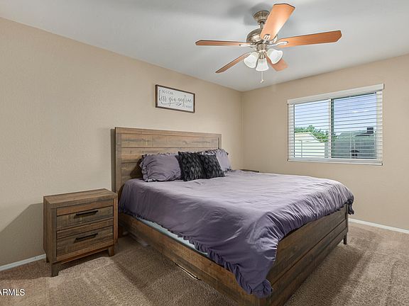 MUST SEE this charming single-level 3 bedroom, 2 bath home, with a sparkling blue pool, energy efficient solar, RV parking, NO HOA, and a well maintained N/S exposure lot in the welcoming community of Knoell East. Upon entry, appreciate the two-tone neutral color palette, wood-like plank flooring in all the right places, and an open concept floor plan. Enjoy an inviting family room that flows effortlessly into the updated eat-in kitchen. Here you will find elegant white cabinetry, SS appliances, gorgeous granite countertops, recessed lighting, and easy access to the backyard pool oasis. Step out under the extended covered patio and start dreaming of the BBQs and swim parties with family and friends. Back inside, wander over to the primary bedroom where you will find an ensuite bathroom featuring an updated walk-in shower, along with a large walk-in closet. You will also find two secondary bedrooms, a full guest bathroom, and a convenient laundry space rounding out this wonderful floor plan, so be sure to take a look and start imagining the possibilities. This home is located close to popular restaurants, convenient shopping, fun golfing, city parks, and Desert Oasis Aquatic Center for some summer fun, making this a great place to call home.