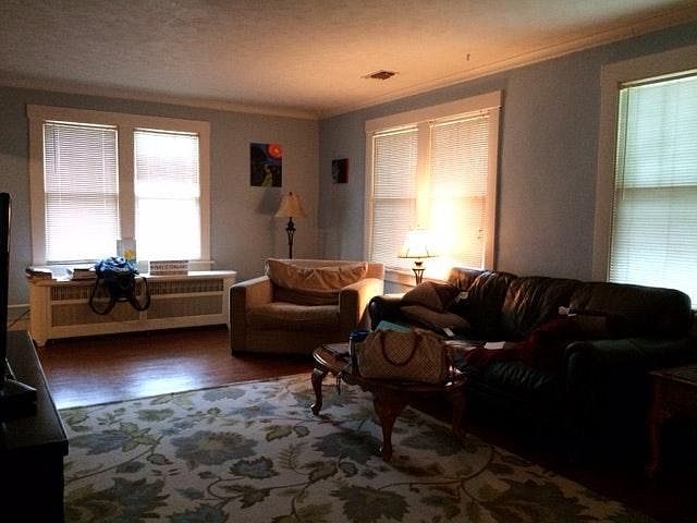 Beautiful yard with lots of flowers. The house is located on a brick street. Because of this, people tend not to drive on it unless they live here. Very quiet The apartment has two entrances. A private entrance is located off the front porch. The neighborhood is fantastic, with very large, mostly single family homes. The largest bedroom is just that...large, 12' by 25'. The smaller bedroom is 12' by 12'. The bathroom has separate tub and shower. The shower is huge!! The kitchen is equipped with dishwasher, stove and refrigerator with ice maker. The kitchen also has lots of cabinets and a pantry. The floors are hardwood, except the small bedroom, which is carpeted. And the kitchen, which is tiled. Laundry is available at no extra expense to the tenants. This is located in the basement. The living room is also quite large and has a working fireplace. This is definitely one of the finest apartments in the city. Please call or email us for a showing. We expect this to go quickly. Owner pays for water and garbage.