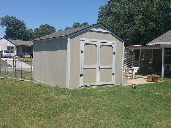 This is a great starter home or investment property in a convenient area of Chickasha. In 2010, the home received a new roof, new central heat and air conditioning system and new windows throughout. This home sits on a large fenced lot- Pet ready! It has 2 storage building in the back yard. Wood floors through most of the house. The living and dining area are open. In both bedrooms there are huge wooden closets with drawer storage as well. The bathroom has newer tile in the shower. Laundry is located just off the kitchen and there is additional built in wooden storage in there as well. The back patio is covered and ready for entertaining guests.