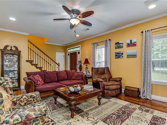 This 1 1/2 story cottage style home is special! It sits on a large wooded lot with pretty landscaping. The country kitchen is open and spacious with hardwood flooring. The living room features a fireplace with gas logs. The master bedroom is large and the master bath has 2 walk-in closets and a double vanity. Upstairs are 2 large bedrooms, 1 full bath and a bonus/office/bedroom. There is lots of floored storage space. Lake access and neighborhood dock and landing just down the road.
