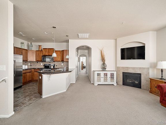 Beautiful End-Unit condo in highly sought-after West Arvada. Walking distance to shopping, dining, parks, trails, golf and more! 2-Bedrooms, 2-Baths with bonus office and same floor laundry. Bright open concept, large living room with gas fireplace and dining area that opens to your private covered balcony. Upgraded kitchen allows for bar dining and plenty of cooking space with all the beautiful stainless appliances. You'll love the 5 piece master bath and walk in closet. Over-sized attached 2 car garage with plenty of extra storage. Huge advantage to this location/building as there are only 3 units in this building and a footprint with no one above or below. From the entrance, a staircase leads you up to the main living area. All living area, bed/bathrooms are main level. The HOA takes great pride in the complex and grounds and has installed new roofs, completed new exterior painting and updated landscaping within the past couple years.