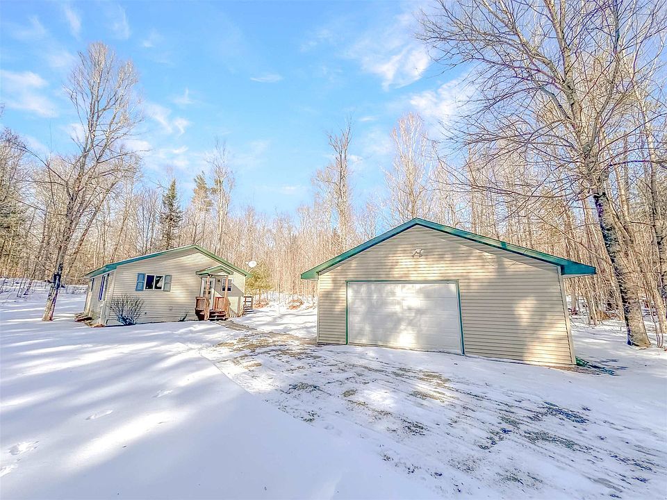 Are you ready to pack your bags and head north? This cozy cabin built in 2000 features 2 bedrooms and 1 bathroom, perfect for an up north getaway, investment opportunity, or a full-time residence. The interior and exterior are low maintenance, allowing you to spend more time enjoying the outdoors. The full basement includes a washer and dryer, as well as extra storage or entertaining space. With 5.33 wooded acres, you'll have plenty of space to explore and enjoy nature with wildlife right out the backdoor. The 23x23 garage offers ample storage space for your toys, whether it be snowmobiles, UTVs, or other outdoor equipment. And with its proximity to snowmobile and UTV trails, adventure awaits just a short distance away!!
