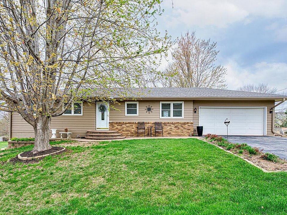 Showings start Friday 4/21. Looking for a ranch with a large corner lot, with county taxes, & Lewis Central Schools? Look no more! Move in ready 3+ bedroom ranch with 2 car garage! Kitchen includes granite countertops, built in oven, wood floors, eat in area, and all appliances included! Main floor primary with 1/2 bath area. Full walk out basement with large open family room area. Large storage and laundry room. 4th non-conforming bedroom. Almost 1/2 acre corner lot. Newer roof. and newer deck. Don't miss this one! Please allow up to 24 Hour response to any and all offers. Offers will be submitted as received.