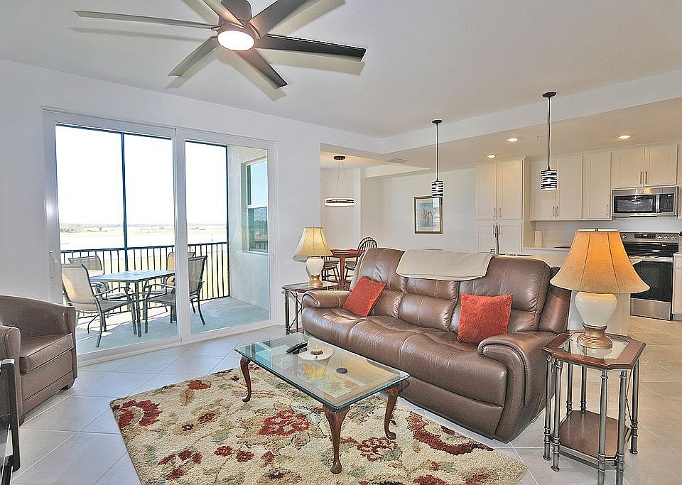 WHY RENT?? I can put you into this brand new condo with a low down payment and very affordable monthly payments, located in the newest golfing community at Babcock Ranch, South West Florida. Webb's Reserve Terrace Condominiums. 2 bedrooms, 2 full baths. Beautiful 3rd floor golfing and waterfront view. This fully furnished condo is located on the 10th green of Florida's newest 18 hole Jack Nicolas Designed golf course. Fully furnished with high end furnishings and appliances including a new 65 inch LG flat screen smart TV. With as little as $25,000 down your monthly mtg payments can be as low as $1,580. The condo is on the 3rd floor and has a spectacular view over the 10th green on this Jack Nicholas designed golf course and large ponds. This is not a walk-up we do have an elevator. Also, buying this condo from us can save you $5,000 to $7,000 in various closing costs! Look at the pictures; this condo is really beautiful and the view over the golf course and lake is breathtaking. You don’t have to be a golfer to just love this condo. If you are a golfer, that’s a bonus!!! The monthly HOA fees INCLUDE: Insurance for the entire building (no insurance bills); high speed internet; water and sewer bill; building and grounds maintenance; trash + recycling pickup; gated access control with guards, 24/7/365; fitness center. Also, if you're a golfer, it includes your golfing membership for everyone living in the condo.