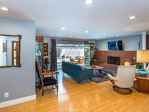 Exceptional Multi-Unit ADU Potential in a Prime Location - Discover the versatility and charm of this expansive 5-bedroom, 3-bath, 3 car garage home nestled on a generous 9,765 square foot pie-shaped lot. With ample room to grow or transform into 2-3 separate units, this property offers boundless possibilities for future expansion or rental income. The impressive entryway, adorned with black slate flooring, leads to a cozy office nook before opening up into a spacious living area. Enjoy seamless indoor-outdoor living with frameless sliding glass doors and a striking wall-to-wall brick fireplace with a raised hearth. The chef’s kitchen has been thoughtfully remodeled to include custom cabinets, all Kitchen Aid appliances, a sleek dishwasher, a free-standing gas range with a double oven, pull out pantry drawers, quartzite countertops and a convenient breakfast counter. Adjacent to the kitchen, the dining room features soaring ceilings and a wall of windows that flood the space with natural light, creating an inviting atmosphere for meals and gatherings. Step into the large sunroom off the dining and living areas, perfect for year-round entertaining regardless of the weather. The home offers three good-sized bedrooms on the main floor, including one with an en-suite bath. A stylish hall guest bath features elegant wood accents and a shower-over-tub setup. The family room, which can be isolated from the rest of the home, includes a wet bar with terrazzo flooring, a refrigerator nook that could easily be converted into a full kitchen. Frameless sliding glass doors to the sun room and single-car attached garage and two additional bedrooms upstairs—complete with a fully upgraded bath, two closets, and a private balcony—present the perfect opportunity for a separate living unit. The backyard is equally versatile, offering two distinct areas: a raised patio deck ideal for outdoor dining and relaxation, and a separate area with a storage shed and a pad for a potential spa. Additional features include two separate newer air conditioning units, parquet flooring in family and primary bedrooms, bamboo flooring in family room, oak wood floors in other bedrooms and ample outdoor storage space off the two-car attached garage. Conveniently located near shopping, schools, Biola University, theaters, and restaurants, this property is a rare find with incredible potential. Don't miss the opportunity to make it your own!