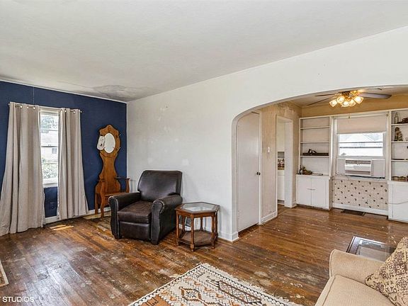 Fixer upper with initial charm. Tin roof new. Wood floors, all appliances stay. Large yared and dettached garage.