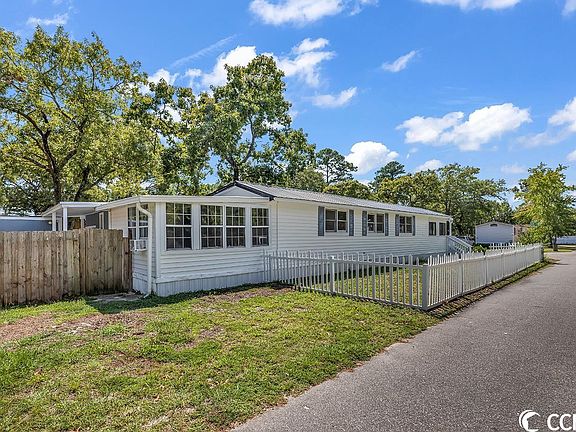 Welcome home to this newly renovated exceptionally LARGE doublewide home located on a corner lot, complete with a fenced side and back yard! This home boasts a sleek metal roof sheltering the main residence, BRAND NEW HVAC, new ductwork, new hoses, newly installed vent covers, freshly painted interiors, and new Luxury Vinyl Plank (LVP) flooring throughout. Step onto front deck a perfect spot to unwind outdoors. Upon entering, you'll find one of the all-season Carolina rooms, designed for year-round enjoyment. Proceed through the doorway into the nice sized family room, offering ample space for both relaxation and entertainment. There is a back room off the family room that can be used as a bedroom. The heart of this home is the very large kitchen, showcasing pristine granite countertops, a center island with a sink and dishwasher, stainless steel appliances, and brand-new cabinets with a pantry closet! The dining room is adorned with beautiful built-ins to house all your dinnerware in style. The master suite is truly extraordinary, featuring a cozy sitting room and not one, but two spacious closets. The primary bathroom offers both convenience and storage, boasting a linen closet located just outside the bathroom door, as well as additional storage space within. The front bedroom is a standout, with its private ensuite half bath and a lighted walk-in closet, ensuring comfort and privacy for guests or family members. But the allure of this property extends beyond its interior. Relax and unwind in the second Carolina room at the back of the house, perfect for indulging in your favorite book or simply unwinding. Furthermore, you'll appreciate the convenience of the generously sized laundry room. This property also offers a range of storage options, including both attached and detached options, ensuring that you have ample space for all your belongings. Owners have full access to enjoy the lake with paddle boats, kayaks,canoes & fishing. Crystal lake is located close to restaurants, airport, Market Common & minutes to Myrtle Beach State Park