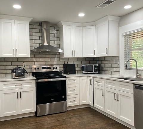 This is a gorgeous contemporary 3 bedroom 2 bathroom renovated home located in the HIGHLY SOUGHT-AFTER BELVEDERE PARK!! Great open concept for conversation and entertainment. Hardwood floors throughout are highlighted by gorgeous recessed lighting. Upgrades include all appliances, wall-mounted range hood, glass cooktop, quartz countertops, and shaker style soft close cabinet and drawers. The Custom Frameless shower in the master bath is absolutely stunning. The original hardwood floors from 1955 have been professionally matched, patched, and refinished. The Basement is partially finished but offers plenty of space for your own concept. Huge laundry room and wine cellar! One of the best things about this property is LOCATION!! **Minutes from Downtown Decatur, Druid Hills Park, Downtown Avondale, CDC, and Downtown Atlanta! Magnet Schools within walking distance!