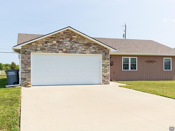 Beautiful 2016 built ranch style home in Sunflower Meadows Addition in NE Emporia! 3 bedrooms and 2 full baths of main floor living with almost 1400 square feet of space. Stained concrete floors, large kitchen area, with seller leaving kitchen appliances and kitchen island negotiable! Primary suite inlcudes a large walk-in closet that doubles as a storm shelter as well. Total electric home with an open floor plan, main floor laundry, patio and double car garage. New gutters and roof in April of 2022! Hard to find ranch style home all on one level, hurry while it lasts!