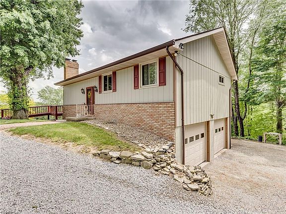 You CAN'T beat this view!!! The open floor plan with vaulted, beamed ceilings on the main level, has loads of windows to take full advantage of the magnificent view of the countryside. This home is just minutes from the highway, shopping and dining, yet it's undeniably in the country. The kitchen is fully equipped with all appliances and the laundry room is equipped with washer and dryer. The gorgeous main level has a large, open area with great room, kitchen, dining area, laminate hardwood floors and a wood burning stove on a brick hearth. The 2nd level, located at the top of 4 or 5 steps, features a 14x11 master bedroom with lots of closet space, carpet and a ceiling fan, a large full bath and 2 additional, carpeted bedrooms. The lower level offers a 2nd full bath, with attached laundry room, ceramic tile and a large walk in shower. This level has walk out access to 2 car garage (with running water & garage door openers) & patio. There is also an abundance of storage space. The grounds have many fruit trees, including apple and pear trees and grape vines. The list of updates includes: Flooring, interior paint, water heater, chimney, 2 wood burning stoves, 2 insulated garage doors with openers, gutters, gutter guard, windows throughout, well pump.