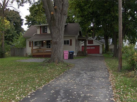 MINIMUM BID $90,000! LIST PRICE COULD BE HIGH OR LOW. NEW Interior Paint and repairs, Traditional Cape Cod sits at the back of the .44 acre site, almost hidden by trees, with a 2-car garage, 460 SF, and long, blacktop driveway. House is a classic, 2-bedroom, 1.5 bath, 1120 SF, with modern roof, vinyl siding, inviting open porch, deck and fenced rear yard. Interior has been modernized with thermal windows, doors, furnace, panel box and water heater. Bathtub and shower surround is original Bathfitter! PLUS Gates-Chili Schools with the privacy and low maintenance you need.