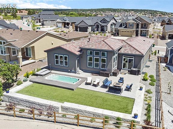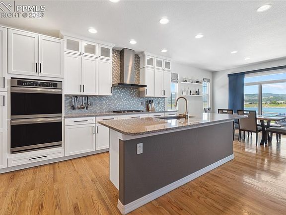 Nestled in the picturesque town of Monument, this exquisite property offers a truly luxurious living experience with lake and mountain views! As you approach this stunning residence, you'll be captivated by its impressive curb appeal. The meticulously landscaped front yard, featuring lush greenery and vibrant flowers, sets the stage for the beauty that lies within. Step inside, and you'll be greeted by an expansive open floor plan that seamlessly connects the various living areas. The spacious living room provides the perfect setting for relaxation, boasting a cozy stone fireplace and large windows that frame picturesque views of Woodmoor Lake and the Rocky Mountains. The gourmet kitchen is a chef's dream, equipped with stainless steel appliances, custom cabinetry, pantry, and a generous island. There is also a dry bar and beverage center with two refrigerators and additional storage. Whether you're hosting a family gathering or preparing a delicious meal, this kitchen will undoubtedly impress. The master suite is a private oasis, featuring a spacious layout, a luxurious ensuite bathroom, and two walk-in closets that provide an abundance of storage space. The basement has a full kitchen and living room making a great setup for entertaining or multi-generational owners. Plus an en-suite bedroom, and two others that share a full bathroom. Step outside onto the expansive patio with an 18' swim spa, and you'll be greeted by breathtaking lake and mountain views. This outdoor space is ideal for entertaining guests or simply enjoying a quiet morning coffee while immersing yourself in the tranquility of nature. Easy access to the lake walking trail! Situated in the heart of Monument, this property offers easy access to a variety of amenities. Explore the charming local shops and restaurants or take advantage of the nearby parks and recreational areas, perfect for outdoor enthusiasts.