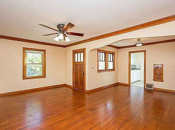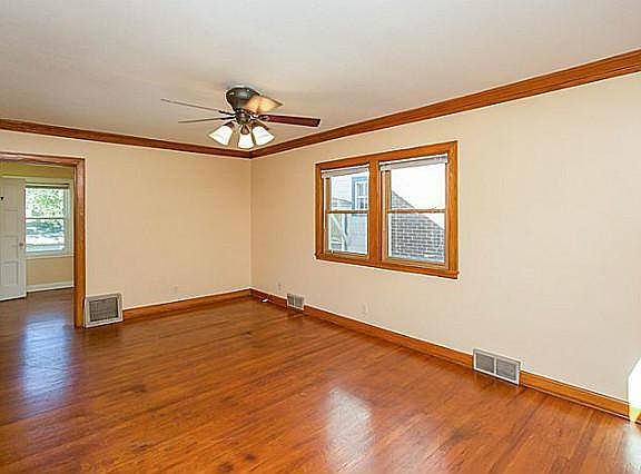 Great price on this conveniently located 3 bedroom home. Upstairs includes two bedrooms with Jack and Jill bathroom. Hardwood floors and crown molding throughout. New ceiling upstairs. Newer windows.Fully finished basement includes a bedroom with egress window, den and full bathroom with tile shower and floor. New toilets upstairs and down. New carpet and windows in basement.Furnace, water heater and central air are updated. Soffets have been repaired/replaced and new rain gutters and downspouts.Appliances stay including washer/dryer. Close to schools, churches, transportation, I-235, fairgrounds, Grandview. Located in NFC Green area . Qualified buyers can receive up to $10,000 in grants.