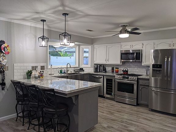 Beautiful and well-maintained home with great curb appeal! This 3-bedroom 2-bath home has many upgrades throughout and offers an office and a pool. Nice open floor plan with stunning large fireplace for those cold winter days. The remodeled kitchen features quartz countertops, nice backsplash, farm style sink, an island, a wine refrigerator, and beautiful windows. The cute backyard offers a covered patio, extra cement, and a sparkling pool. Home also features dual pane windows a newer A/C and roof. This home won't last !