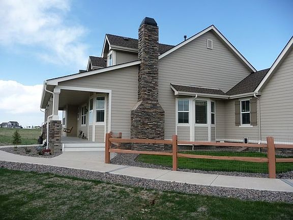Big Price Reduction!*Awesome ranch home w fin. W/O Basement*Classic front porch, patio & deck w/ view*Chef's kitchen, granite counters, cherry cabs*Main fl office + 3 beds on main, 2 bed/2 bath in huge walkout basement*Great views*Why build when you can buy this lg ranch home, fin. basement & landscaping--big savings!*3 car garage & paved drive*Walk to Legacy Academy --public Charter School*Near shopping & many services*Zoned for horses*Extensive trails & open space*Paved roads*Live the Colorado dream*Town & Counrty living just 1 mile from charming town of Elizabeth!