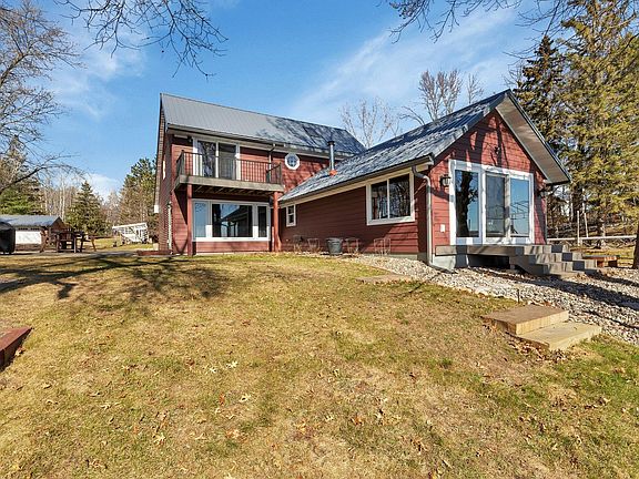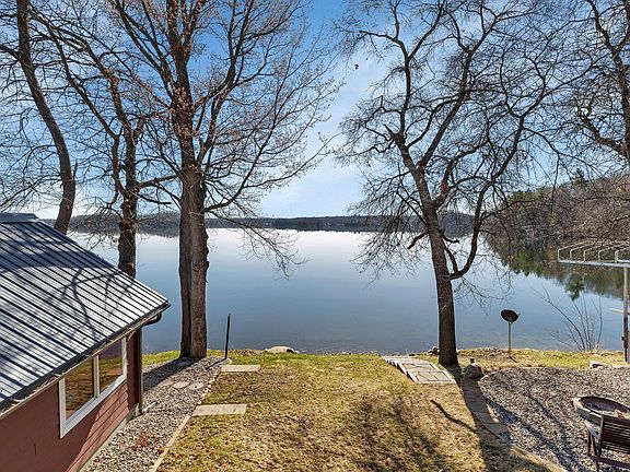 Enjoy beautiful Fish Trap Lake!! This completely remodeled property features .74 acres of land and an amazing 172 feet of lake shore frontage to enjoy year around! Outside the property features a deck in front, within feet of the lake, and also, one off the upstairs bedroom, both with beautiful lakeside views. A double garage, insulated and wood stove heated, 26x24. A storage shed 8x12, and a storage container for your firewood. Amazing flagstone patio and firepit for all your entertaining needs. Tons of extra amazing landscaping, rock walls, flowers and plants. The bedroom downstairs and one upstairs have big, beautiful closets. Upstairs there is a loft/play area/storage area. The cabin has custom live edge cabinets, quartz countertops, stainless appliances, and beautiful custom woodwork throughout the cabin. There's a woodstove in the family room for those cold winter nights. The cabin will sleep 11 comfortably.