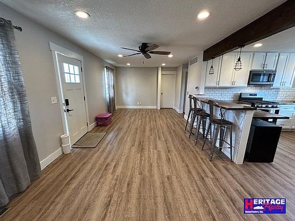 The white shaker cabinets frame the newer stainless steel appliances in the updated kitchen of this 2 plus 2 bedroom home. The living room has new luxury vinyl floor covering as well as knockdown textured ceiling and walls. New vanity in the bathroom completes the updates. Spacious backyard that offers shade in the afternoon adds splendor! There is so much character and potential still yet hidden in this charming residence! Start 2024 with something worthwhile! A new home!