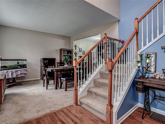 Beautiful 2 story in Kinsley Forest on half acre lot! Walk into a welcoming entryway with real hard wood floors, tall ceilings, newer paint and inviting staircase. Open office/dining room combo makes for easy entertaining. Large kitchen with new butcher block like countertops, farmhouse sink, tiled backsplash and sliding glass doors to concrete patio and large yard. Kitchen is open to a comfortable living room with ceiling fan and wood floors, 1/2 bathroom and laundry room finish out main level. Second level has 3 secondary bedrooms, full bathroom and large primary bedroom/ bathroom with double vanity, large tub, stand-alone shower and walk in closet. There is room to grow in a huge unfinished basement. New HVAC system less than one year old, butcher block like countertops less than one year old, hot water heater is 6 months old. Great location close to highways, shopping and neighborhood pool!