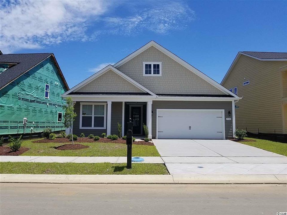 Home is under construction. Photos are of a similar home with the same floor plan. Beautiful open floor plan with 3 bedrooms, 2 baths, flex room/office. Main living area has 11 ft. high ceilings, Large kitchen with breakfast bar/ counter height island with granite, corner walk in pantry, stainless steel appliances with a natural gas cooking, and 36" white staggered cabinets. Hardwood-look porcelain tile floors throughout main living area, bathrooms and laundry, crown molding, and much more. Owners suite has double closets, separate tiled shower and tub and double vanity. Large covered back porch off living area. Golf cart to the beach and The Market Common restaurants & entertainment.