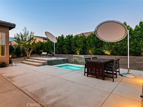 is the focal point for this beautiful yard. The spa seats 10 and has