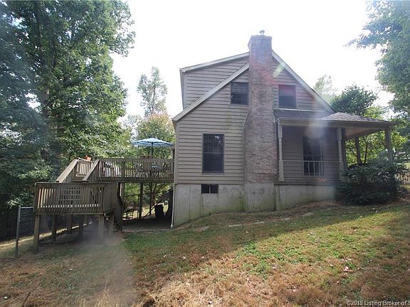 Martha???s Vineyard-style Cape Cod in prestigious, quiet location on cul-de-sac, right off of I-64 in Georgetown area, just 15 minutes from downtown Louisville! Great floor plan, cozy 3 bedroom, 3 1/2 bath, on one acre with private wooded rear lot. Partially finished walkout basement with optional room that could be 4th bedroom. NEW HVAC. The large living and dining are open with a fireplace which sets the theme for the smell of wood and seeing a fire's flame. The eat-in kitchen leads to the large deck to appreciate the view of the woods and no one to cloud your view. The walkout basement opens to a family room plus a flue for a wood stove. French doors walk out of the basement to the patio and fenced side yard. The covered front porch and stonework are a welcome comfort to enjoy with your morning coffee, or at the end of a long day! Utility options in garage or in 3rd bath in basement. Quick and convenient to award winning Floyd County Schools, including Floyd Central, Highland Hills and Georgetown Elementary. Mature trees and abundant wildlife make this peaceful retreat one-of-a-kind. Jewel in the rough, needs TLC, but ready for someone with a vision for potential!