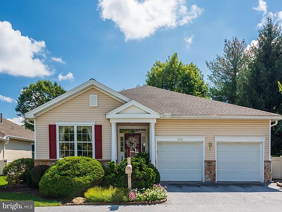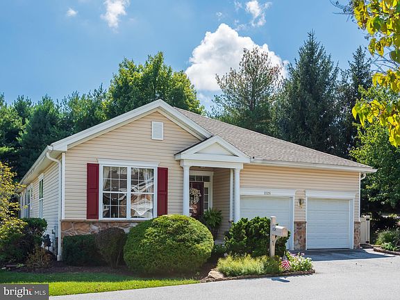 A sought-after Single in Hershey’s Mill Ulster Village, “Freesia Extended with Sunroom” model, with private deck on a mature landscaped lot with many upgrades. As you enter this home you have a wood floor Foyer with custom Transom window and sidelights around the front door, you see custom columns, woodwork, and crown moldings. To your left is the Living room with wood floor, crown molding and large double window, this is open to the formal Dining Room with wood floor, custom columns, woodwork, crown moldings and Waterford chandelier. Continue back to the large, remodeled Kitchen with refinished 42” cherry cabinets, a custom glass front corner cabinet, some cabinets with pull out shelves, large walk-in Pantry, tile flooring and much more. The Kitchen has a large eating area with stained glass chandelier that is open to the Family Room with natural gas Fireplace with a marble surround and wood mantel. Follow this to the bright, open Sunroom with sliding door to the private deck with retractable awning. The remainder of the Main Level has a large Hall with wood floors, Waterford lighting, a stairwell to the lower level with wainscoting trim and a stained glass window; the Primary Bedroom with extended length has crown molding, a very large walk-in closet and opens to the Ensuite Primary Bath with Stall shower, soaking tub, double sinks and separate toilet area; there are 2 additional Bedrooms, Hall Full Bath and Mudroom/Laundry that leads to the attached 2 car Garage. The Lower Level is open and ready for storage or your finishing touches. A must see property! Located in the serene, ACTIVE, Gated, 55+ community of Hershey’s Mill with its lush Landscaping, walking trails, many activities and shopping right outside its West Gate.