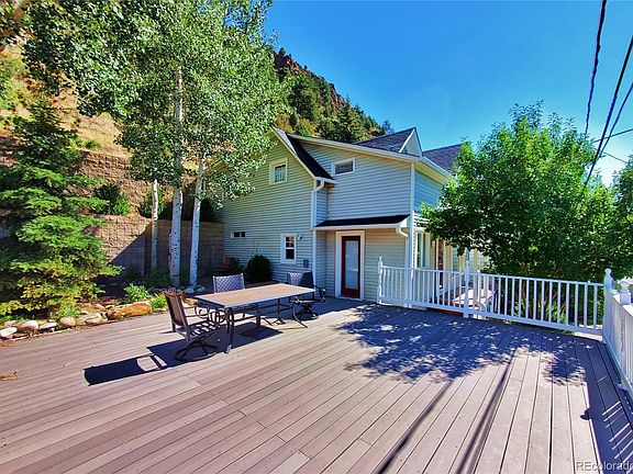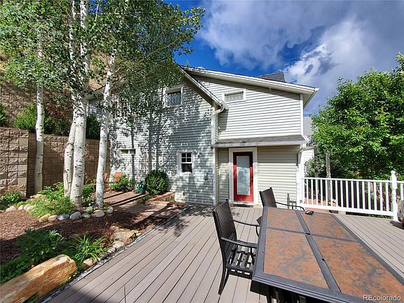 Stunning Victorian with postcard views of Historic Idaho Springs. This majestic home sits on 1/4 acre above the town and gets full southern exposure. It backs to City of Idaho Springs open space and is just 2 blocks to the vibrant downtown district. Sitting high, it overlooks historic downtown, Echo Mtn. ski area, the waterwheel & waterfall. The home has been completely and lovingly remodeled. The Chef's kitchen features granite counter-tops, custom cabinets, stainless appliances, high-end fixtures, a breakfast nook and bar seating. The bathrooms feature re-glazed claw-foot tubs, beautiful fixtures and one custom double vanity. The master bedroom is private and gets nice morning sun. The second bedroom is vaulted and features a Juliet balcony overlooking the town that could be converted to a large upper balcony. The third bedroom has built-ins and is perfect for a child or an office. There is a large back room where the laundry is now that is a nice bonus room. Behind the home there is attached storage that would make a nice stone wine cellar. Behind the home there is a flat spot that could be turned into an amazing living area with panoramic views. The massive deck and garden area off the kitchen are perfect for entertaining and enjoying the scenery. This home is all about lifestyle! Enjoy Historic towns, unique shops, bistros, brew pubs, distilleries, casinos, rafting, mountain biking, zip lines and more! Just 25 min to skiing 30 min to Metro area. Offers reviewed 8/4.