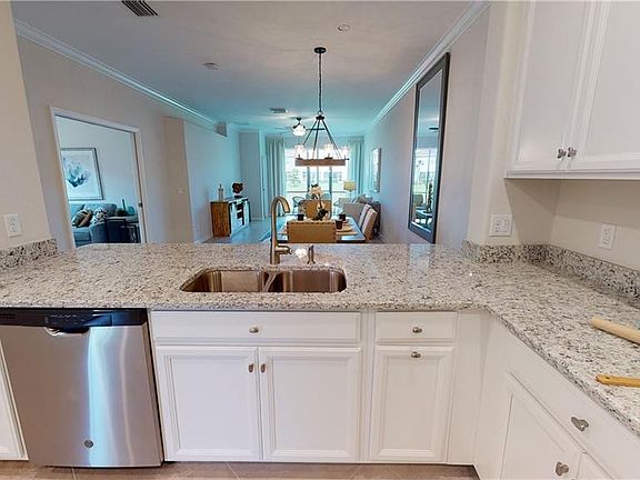 Spacious great room floorplan is ideal for entertaining. Bedroom 3 with double pocket doors opens to great room for large gatherings. Kitchen and baths include white shaker cabinets with gray granite tops. Lennar's Everything's Included concept includes crown molding, all appliances, home automation system and much more. This community has natural gas utilities and low HOA dues. Close to beaches, shopping, hospitals, dining & more makes this location ideal. Elevation rendering, virtual tour and photos are of model and are used for display purposes only. Virtual showings are available. Estimated completion December 2020.