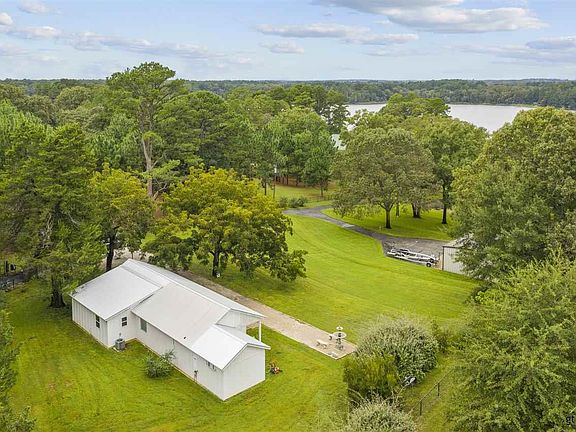 Rare gated 2.185 acre waterfront lot on Lake Tyler! Adorable modern farmhouse, newly built in 2017 with an addition added on in 2020. The Joanna Gaines inspired house has 2 large bedrooms, family room, stairs to a reading loft, 2 full baths, laundry, marble through-out, wood floors, porcelain bib sink, ship lap bedroom walls, fireplace in master, 2 large walk in showers, master walk in closet, master fireplace. Property boasts a large boathouse with two boat stalls, jet ski lift, large deck for entertaining, private boat ramp and a giant workshop with two-story ceilings and more. Sit by the large fire pit down by the pier and watch the most beautiful sunsets. 2005 Nautique Ski Boat and 2019 Xpress Flat Bottom Boat- both for sale separately