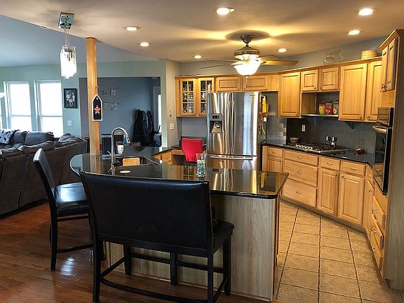1,920 square feet with a full finished basement. Central heat and air, central vacuum, open floor plan, wood stove that saves a lot of money on propane, 2 outbuildings, 33 foot above ground pool with huge deck, large side deck, back porch partially covered, lots of windows, cathedral ceiling in living room, wooded acreage.