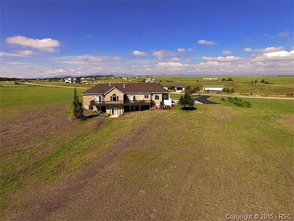 Absolutely Immaculate Custom Rancher on 5 acres of beautiful meadowland in Terra Ridge. Incredible views surround this stunning home, offering the best of Colorado. This home has been very well cared for and features all new carpet and paint.From the entrance of the home, you're greeted with great natural light and an open floor plan. The living room features vaulted ceilings, large windows, built-in shelving and a double-sided fireplace. This stunning gourmet kitchen has granite countertops, high-end stainless appliances, two peninsulas and a raised bar that will give you plenty of counterspace. The dining area features a large bay window with clear views to Pikes Peak and an adjoining sitting area that opens to the expansive deck and hot tub, making this the ideal house for entertaining. The master retreat boasts crown molding, a large walk-in closet, and a bay with private entrance to the deck. This gorgeous 5 piece master bath has heated floors, an oversized soaking tub, and high-end modern fixtures. Two more spacious bedrooms and 1.5 baths complete the remainder of the main floor. The lower level has a great family room with high ceilings, garden-level windows and a walk-out. You????????ll also notice exceptionally large bedrooms with walk-in closets and another full bathroom. **The walk-in closet behind the North bedroom has a secret entrance behind the built-in shelving that leads to a large storage area.**