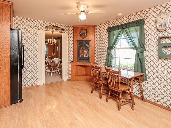What a beautiful piece of country property. Home in good condition with security system. 2 nearly new pole barns one 24'x40' and second 54'x40'. Deck across back of home. Pellet stove in basement and living room nearly heats entire house. Oil bill averages $50/year. New kitchen in 2005 with appliances included. Finished basement with rec room and new half bath. 2 year tear off roof. New chimney. Windows and vinyl siding only 7-8 years old. Attic fan run by thermostat. There isn't much more you could ask for in a home. Looking to move to the country? Now is your chance.
