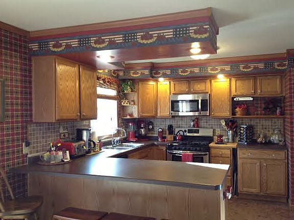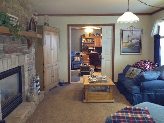 Consider this HUGE home overlooking stocked pond! Double sided fireplace, 2 garages, some woods. Great location, Great home! Add closets and the den and rec-room could easily be additional bedrooms. Sq ft & room dimensions are approximate.