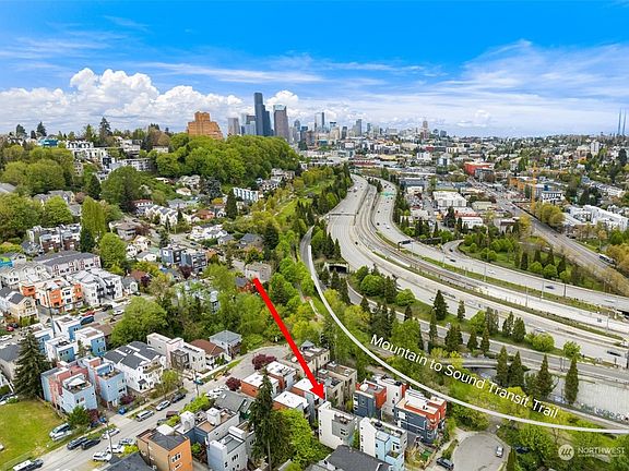 Single family living with the convenience of a townhome - Lock and leave! JUST OFF THE MOUNTAIN TO SOUND TRAIL. Sleek & thoughtfully designed to maximize outdoor space w/rooftop deck and 2nd patio. Exudes modern style and comfort. An open floor plan welcomes with beautiful living space + gas fireplace, pristine kitchen with gas stove + large center island and modern finishes. The primary suite is a private sanctuary with walk-in closet, double sinks and separate “wet room” concept soaking tub w/rainfall shower. Additional bedrooms on separate floor offer space to unwind, work, w/flexibility for home office/guest suite. A/C, & Mins to future light rail, easy access everything. Enjoy summer rooftop parties + city life. Tons of street parking!