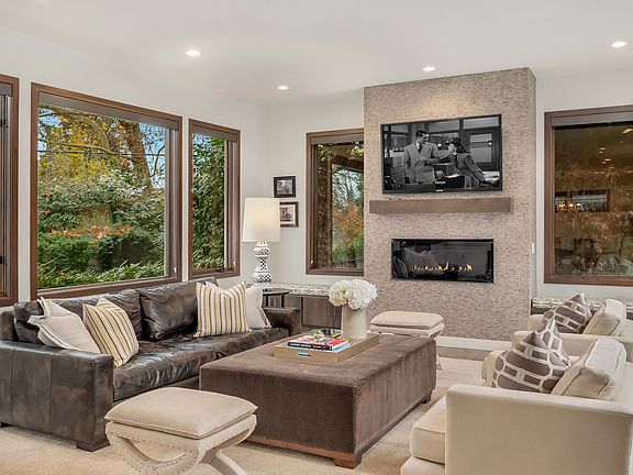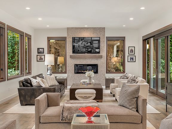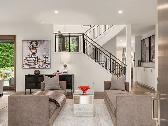 This timeless, modern home is perched high above the tree-lined street, and steps to the village with its eclectic watering holes, boutiques, coffee-shops, beach, tennis courts and park. Enjoy soaring ceilings, beautiful hardwood floors, a gourmet kitchen with Viking appliances, master suite with with fireplace and 2 HUGE closets, home office with 14'ceilings and deck, a fully finished lower level with guest suite and multiple rooms. Oversized attached 2-car garage enters directly to the home and convenient mudroom with tons of built-in storage for coats & shoes. A lovely private patio with a fountain is accessed from both the kitchen and living room and up a few steps-a grassy area for kids or pets. Over 5700sf of turn-key luxury living at its best!