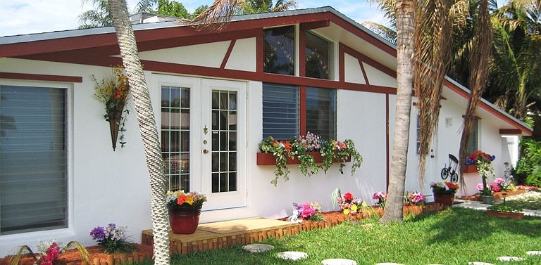 - Exterior features: Stucco, Cement / Concrete