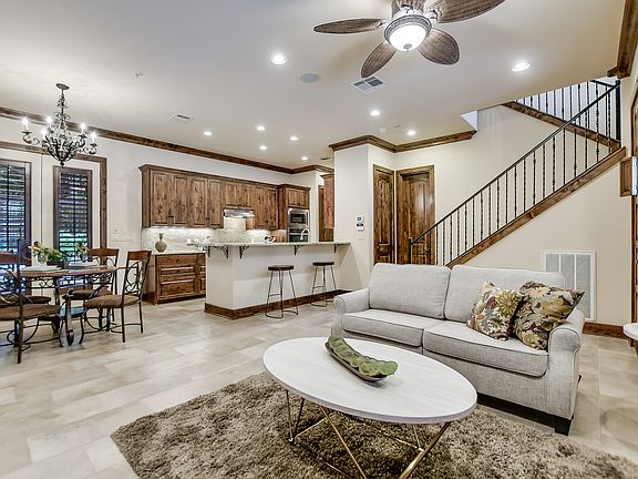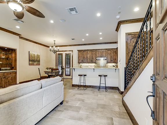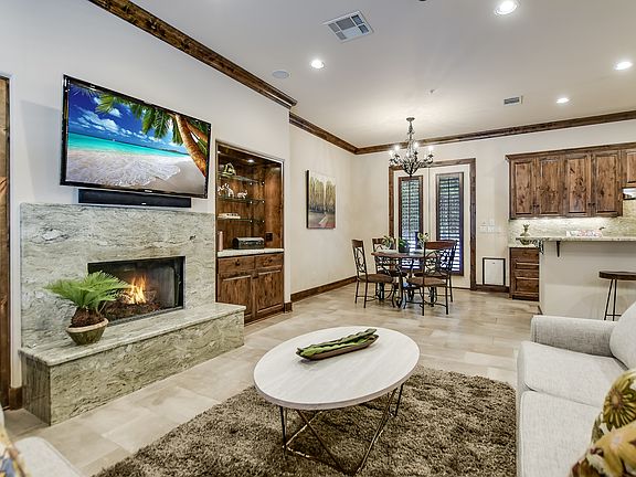 Diligently sought, rarely encountered: a stellar Austin location, a condo with abundant outdoor living spaces, timeless style and thoughtful amenities. Adjacent to the Zilker neighborhood, Villas of Lost Canyon is minutes from downtown Austin restaurants and entertainment, a four minute stroll to Restaurant Row, a short walk to famed Zilker Park and Barton Springs Pool. Within the gates the complex is reminiscent of an Italian Hill Town - a winding drive encircles a sparkling fountain, stone embellished entrances and balconies line the way. As an end unit, the home offers outdoor living spaces almost unheard of in a condo residence: a covered patio with a wall mount for TV, an enormous open deck perfect for convivial gatherings, a secluded terrace with a fireplace off the primary suite. Interior style in a rich palette of natural hues and upgraded finishes provides a backdrop for comfort and casual ease at home. Windows are outfitted with top quality plantation shutters. The primary bedroom is large, easily accommodating a sitting area and providing access to the adjoining private terrace. In the kitchen a matched suite of stainless steel appliances -five-burner gas range, double ovens, microwave and dishwasher, counter-depth refrigerator-a spacious pantry, and copious cabinets enhance the pleasure of preparing and serving your favorite dishes. On the main level a coat closet and discreet half bath are located near the entry. Storage and home management are made easy. Each bedroom closet is custom outfitted with drawers, shelves and hanging space. The upstairs utility room accommodates full-sized washer and dryer, has a sink, a cabinet and hanging space. A walk-in closet in the hall provides space for household paraphernalia, linens, and supplies. The attached two-car garage features shiny epoxy flooring, bright lighting and custom fitted storage cabinets. Two HVAC systems are zoned for comfort on each level allowing separate settings for both levels.
