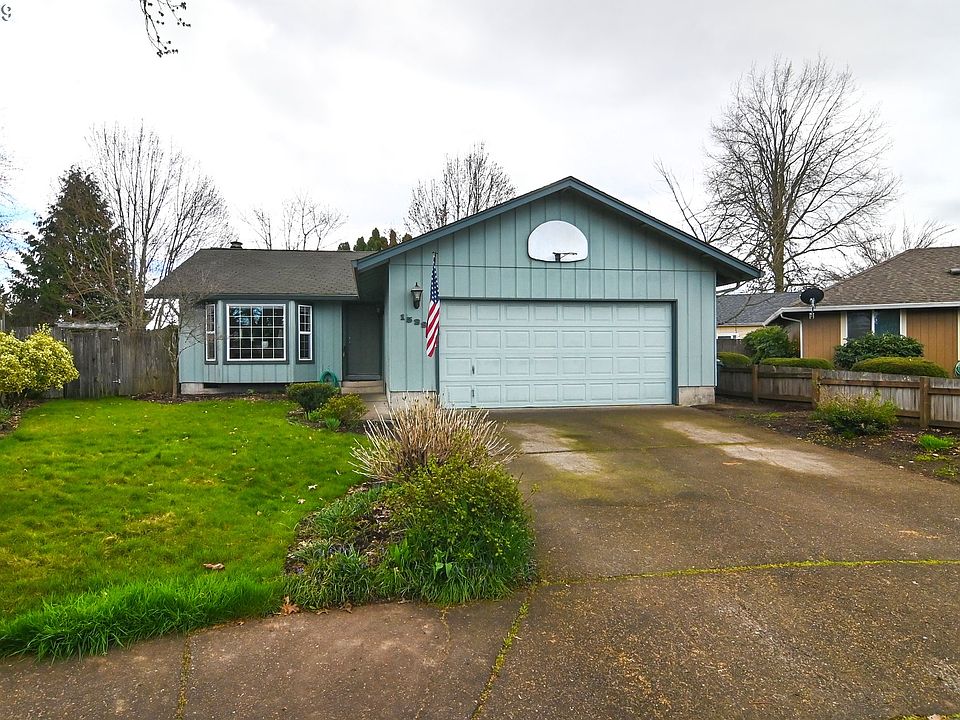 Light & Bright 3 bed, 1 bath home in quiet cul-de-sac. Vaulted ceilings with open beam, kitchen with granite counters, ss appliances & eat bar, living room with floor to ceiling rock fireplace. New carpet in all bedrooms! Finished garage with tons of storage and b/i work bench, Irrigation system, basketball hoop and large fully fenced backyard with patio and tool shed!
