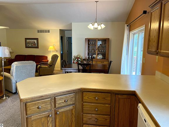 Discover this beautifully maintained 3-bedroom, 2.5-bath ranch-style condo offering easy living and thoughtful design. The main floor boasts vaulted ceilings in the living area, a fully equipped kitchen, two bedrooms, 1.5 baths, a convenient laundry room, and a dining area that opens to a private deck with an awning—perfect for relaxing or entertaining. The finished lower level features a spacious bedroom suite with a full bath and a cozy second living area. Ranch condos are a rare find—don’t miss your chance to tour this one!