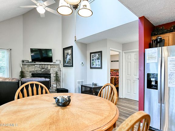 Welcome to 1529 Gillespie Way, a charming 2-bedroom, 2-bathroom cabin nestled on a tranquil quarter-acre lot in the desirable Chalet Village of Gatlinburg, TN. With its prime location allowing for overnight rentals and accommodating up to seven guests, this cabin presents an excellent investment opportunity. Immerse yourself in the beauty of Chalet Village, a delightful community that offers access to multiple pools and amenities for residents and guests alike. The cabin comes fully furnished, ensuring a seamless transition for potential buyers who can immediately begin booking reservations and generating income. Tucked away at the end of the road, this property offers a private and serene setting, perfect for those seeking tranquility. Embrace the natural surroundings and spot abundant bear and wildlife from the comfort of your own retreat. The cabin boasts two cozy fireplaces, ideal for chilly evenings, as well as inviting jetted bathtubs and a newer jacuzzi on the deck, providing a truly relaxing experience. Recent upgrades include the addition of awnings on the wrap-around deck, ensuring shade and comfort during sunny days. Furthermore, the fire department-compliant railings and updated flooring upstairs enhance both safety and aesthetics. Convenience is at your fingertips with this location, as it offers easy access to Downtown Gatlinburg, Ober Gatlinburg, and the renowned National Park. Experience the best of both worlds - the peacefulness of mountain living combined with proximity to popular attractions. Don't miss the chance to own this remarkable cabin in the heart of Gatlinburg. Schedule a showing today and discover the endless possibilities it holds.