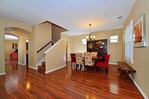 Complete info: http://1529huntersglen.AgentMarketing.com - Can you say GORGEOUS??? This home has it all. Stunning 4 bed 2.5 bath house with upgraded wood laminate throughout. Open kitchen with island and new stainless steel appliances with view of the beautiful large stamped concrete side-yard. It even has a butlers walkthrough pantry with walk-in pantry closet. All bedrooms upstairs and full size washer/dryer closet that includes the washer and dryer. 2 car attached garage. Veterans elementary is a block away, Mater Dei is down the street. Close to all.