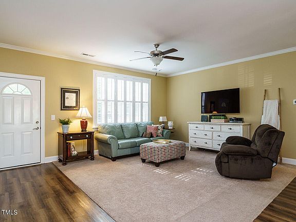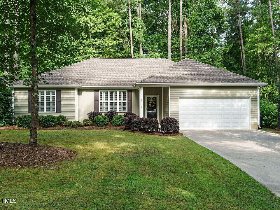 Gorgeous one-level home with stunning features in Carolina Trace - Hidden Lake. This beauty has such great curb appeal. Welcome inside to enjoy 9 ft smooth ceilings and spacious open layout. Gorgeous plantation shutters on windows. Kitchen features breakfast bar, granite counters, stainless appliances and pantry. Large family room connected to dining area with low maintenance LVP flooring makes entertaining a breeze. Split bedroom floor plan features two large bedrooms with shared hall bath and laundry room with tile floors, utility sink, cabinets and washer/dryer. Primary bedroom has walk in closet as well as wall closet currently being used as home office space.Primary bath has double vanities and step in shower. Enjoy the evenings on the back patio with trees all around for privacy with built-in stone fireplace. This home has a 2-car garage and extra storage space. Hidden Lake offers pool, tennis, fishing pond and marina included in POA dues. Memberships available to Carolina Trace Country Club and the two 18-hole courses, Clubhouse and more. Have peace of mind in Carolina Trace - a gated community. Hidden Lake is conveniently located just mins from the rear resident entrance/exit. Don't miss this excellent opportunity for this move-in ready home!