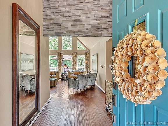 Beautiful full brick, well-maintained home on .84 acres (m/l) with a large deck overlooking the park-like backyard with mature trees & winter views of downtown Tulsa. A hot tub pad with electricity in place, a dog run, and a small shed. Oversized 2 car garage (AP - 660sqft) with Saferoom, built-in cabinets, overhead storage plus floored attic space above the garage. New roof, guttering & exterior paint 2020. HVAC 2016, other improvements include casement windows, Primary bedroom/bath updated, and engineered real wood flooring throughout the majority of the home. 3 bedrooms, 2 baths, a Formal dining room, PLUS a Flex-room with a closet! Spacious kitchen with breakfast nook, granite countertops & large pantry. The living room with vaulted ceiling, a wall of windows & featured stone wall with a fireplace. All this is conveniently located 10 mins from downtown Tulsa!
