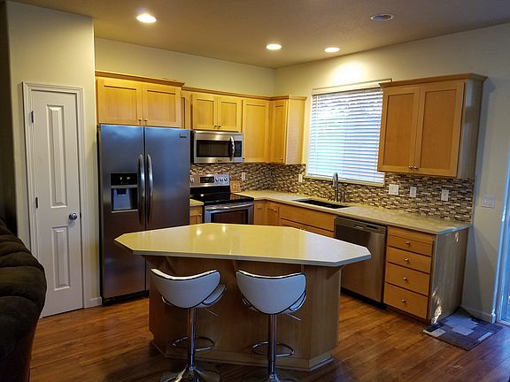 Gorgeous town home with updates throughout. This home features an open concept, quartz counter tops in kitchen, hardwood floors, and gas fireplace. Upstairs are 3 bedrooms, including the master with an on suite and large walk in closet. Both bathrooms upstairs feature newer vessel sinks with quartz counter tops. Backyard is fenced with a nice patio. You may park in your garage, driveway, or street. Street parking is not assigned.