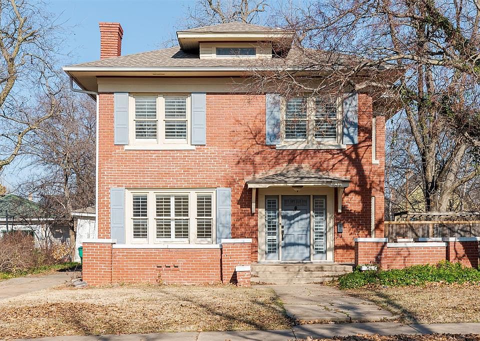 Welcome to this classic, red brick, American four-square home, nestled on a grand estate lot in Putnam Heights, one of Oklahoma City's premier historic preservation districts. As you step inside, you'll be greeted by a spacious living room, adorned with a gorgeous brick fireplace and flanking bookshelves. Sunlight pours in through the walls of windows, fitted with plantation-style shutters, illuminating every corner and accentuating the home's timeless charm. The dining room, elegant with wainscoting, features large French doors that lead out to an inviting deck, perfect for entertainment or quiet evenings. A cozy breakfast nook provides the perfect spot for morning coffee, adjacent to the practical kitchen at the heart of the home. The first floor is completed by a full bath with walk-in shower. Classic saddleback stairs with a beautiful, sturdy bannister connect the living spaces to the upstairs, where you will find four bedrooms, one of which could easily flex into a study or be converted to an ensuite. Rounding out the second floor is a full bath, featuring a clawfoot tub and dual vanity, offering both style and functionality. Step outside to the enormous backyard, a canvas awaiting your personal touch, ideal for play, gardening, or hosting gatherings. The location is unbeatable, offering easy access to Western Ave, Paseo, Uptown, Midtown, and Downtown, and just blocks from the new Bus Rapid Transit Line. While this home will require some tender loving care from its next owner, the potential it holds is immense. Envision the memories you'll create in this piece of Oklahoma City's history.