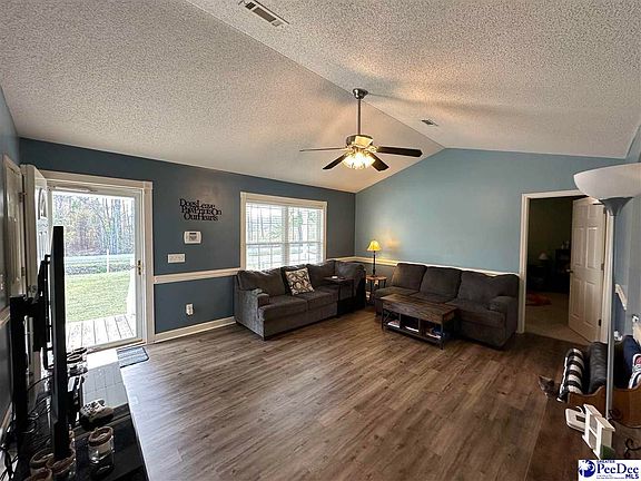 WELCOME HOME! This is the one you have been waiting for! Located in a quiet but convenient rural area of Darlington, SC with a huge fenced in back yard this home is going to be hard to resist! Looking fresh and crisp white with a perfect front porch, this 3 bedroom 2 full bath is the perfect size for new home buyers and those looking to downsize. Nice open living area with cathedral ceiling, roomy eat-in kitchen with laundry room. Primary bedroom features a tray ceiling, nice walk-in closet and full bath. This house has been very well maintained and is move in ready. Two outside storage buildings convey. CALL YOUR AGENT TODAY TO SCHEDULE A SHOWING!