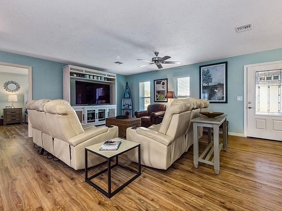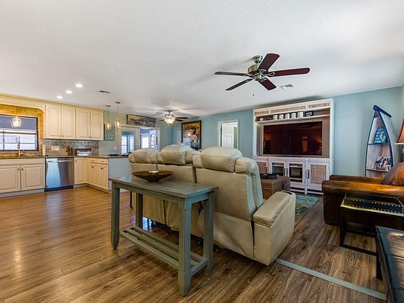 PRICE REDUCED. Have you been looking for an UPDATED home just 2 MILES to the beach AND in a boating community? The moment you walk through the screened front porch with slate tile flooring you start to see the special touches done to this house to make it a home. Open the front door and you are greeted with a large great room floor plan with laminate wood flooring throughout the entire house. The kitchen has all of the upgrades already completed including stainless steel appliances, granite, stone back splash, soft close cabinetry, canned lighting and beautiful pendant lights over the breakfast bar. The dining area has french doors with in door blinds that lead out to your Florida Room. The Florida room is "under air" but also has sliding vinyl windows with screens so you can enjoy the room year round. Step out the door onto your back patio with a slate pad for your outdoor furniture and BBQ and enjoy your fully fenced backyard with easy care PVC fencing-plenty of room for a pool if you choose. Back in the house, the bedrooms are on opposite sides of the home for the privacy of both you and your guests and include good sized walk in closets in each for needed storage. The master bath has a walk in shower and feels very spa like; the guest bath is just as beautiful with plenty of vanity storage in addition to the large linen closet in the hall. The garage has additional space for storage as well. A/C 2015; Roof 2016; New Windows 2017. NEW Florida landscaping just installed. Make this YOUR home TODAY!