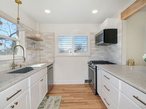 Lovely updated home in Washington Park East/Cory Merrill neighborhood! Price changed to address changes in interest rates. Perfect location one block from I-25 and within walking distance to Denver University, South High School, and Washington Park. Downtown Denver, Bonnie Brae ice cream, and shopping at Cherry Creek Mall just minutes away. This home has been completely remodeled with new plumbing lines (galvanized water pipes replaced with new lines July 2021), electrical, HVAC, and structural updates throughout the house. Refinished original hardwood floors, new carpet, windows, shutters, and paint. Beautifully remodeled kitchen with new appliances, cabinetry, sink, countertops, shelving, and backsplash. Enjoy main floor living with two bedrooms and two brightly designed bathrooms. Open floor plan flows from living area to kitchen and dining. Entertain friends and family in the ample basement living room. The basement also has two additional (non-conforming) bedrooms, updated 3/4 bathroom, a large laundry room, and cellar storage room. Relax in the colorful rose-lined backyard and patio on warm summer nights. There is plenty of storage in the detached 2-car garage with built-in shelving and loft. Newer furnace (2014), water heater (2020), and A/C (2021). No HOA. Feeds into excellent Cory Elementary and Merrill Middle schools. Quiet neighborhood with frequent events at DU, Veterans Park and Washington Park. Live life to the fullest close to the best Denver has to offer!