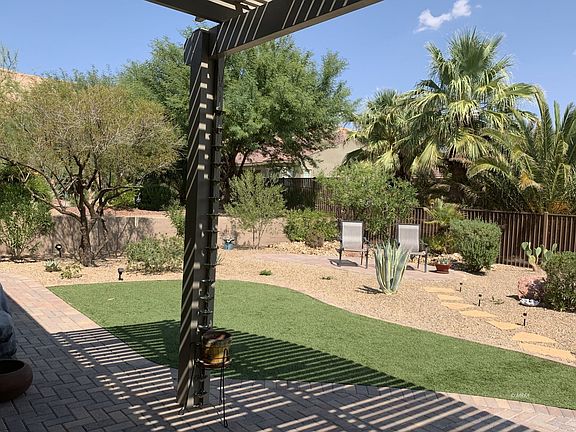 If your dream home consists of 3 bedrooms, 2 baths, over 2,000 sq. ft., oversized lot that has lush and mature landscaping, a gourmet kitchen consisting of stainless steel appliances, double oven, granite countertops, flat top stove, pendant and under cabinet lighting, an eat-in dining area in the kitchen if you want, bar/counter where your guests can congregate and share a beverage with you while you are preparing dinner, that you host in the formal dining room. And of course, you'll want to end the evening out under the covered patio and pergola sipping your favorite beverage, star gazing, and listening to your favorite music through the surround sound. Well, this home is no longer a drea ..it is for real, and it could be yours! A few extras that come with this dream home are laminate wood flooring in the bedrooms and tile floors throughout the rest of the home, water softener, R/O system, window coverings, heat shield in the attic, insulated garage, sunscreens on front and side of home, and new elastomeric and acrylic paint on the outside of the hom ..oh, and this tastefully appointed home has a furniture package available.